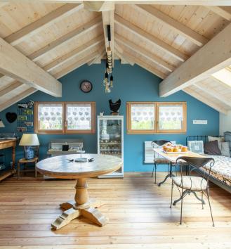 environment. A swimming pool, a garage with two spacious indoor parking spaces, numerous outdoor parking spaces and a 50 sqm-annex, usable as an outbuilding / gym room / workshop, complete this unique home.