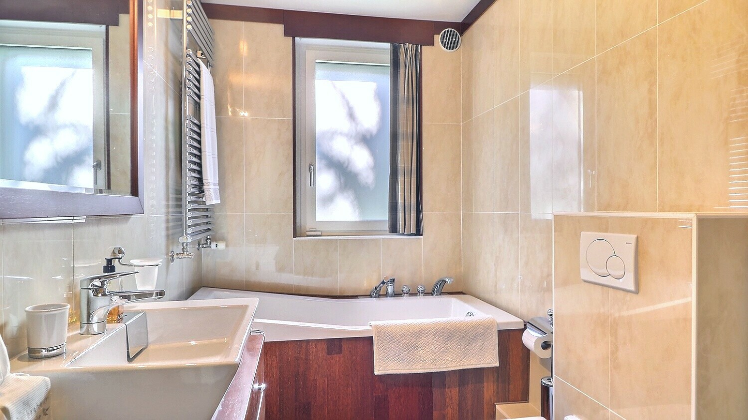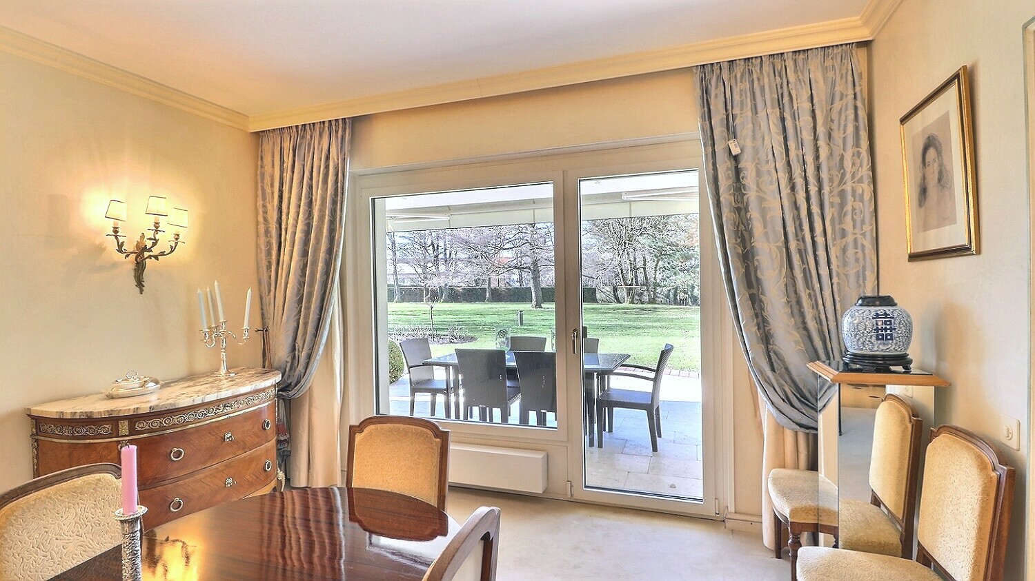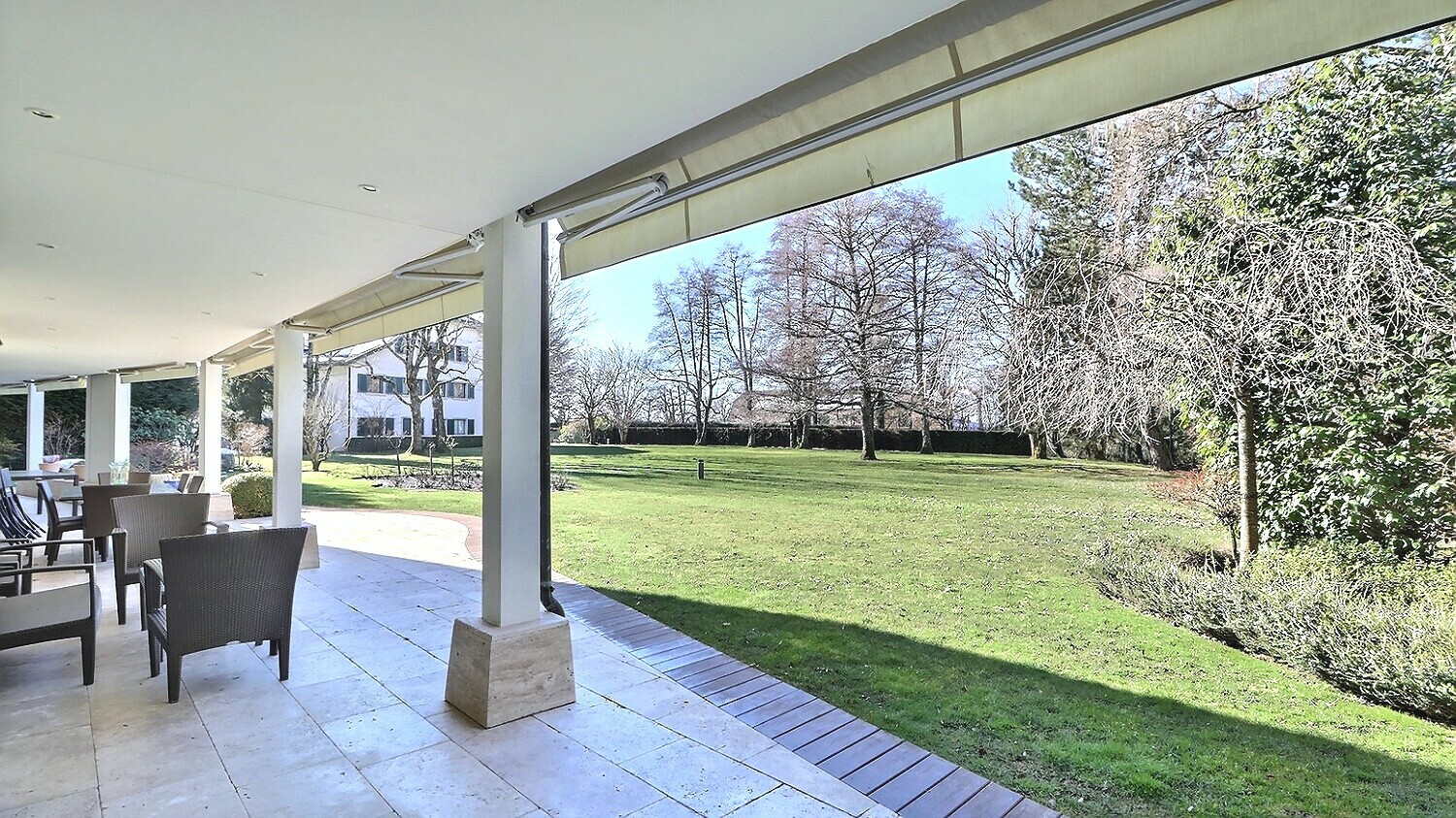 This splendid apartment is located in a very private luxury residence in the immediate vicinity of the Lausanne Golf course in a quiet and sought-after residential area. Built in 1975 and renovated in 2022, it benefits from vast spaces, a superb private garden of 500sqm and a large terrace of 100sqm in a green and pleasant environment. Close to shops, international schools, transport and leisure facilities, it is perfectly located. Two double reception rooms open onto the terrace and the garden, evoking the volumes of a single-storey house. Decorated with great elegance and care with quality materials, this property with 11 rooms including five bedrooms and suites and a large office extends over a surface area of approximately 450sqm of living space and offers generous volumes and a beautiful light thanks to its south-western orientation. This exceptional property offers optimal living comfort with its particularly