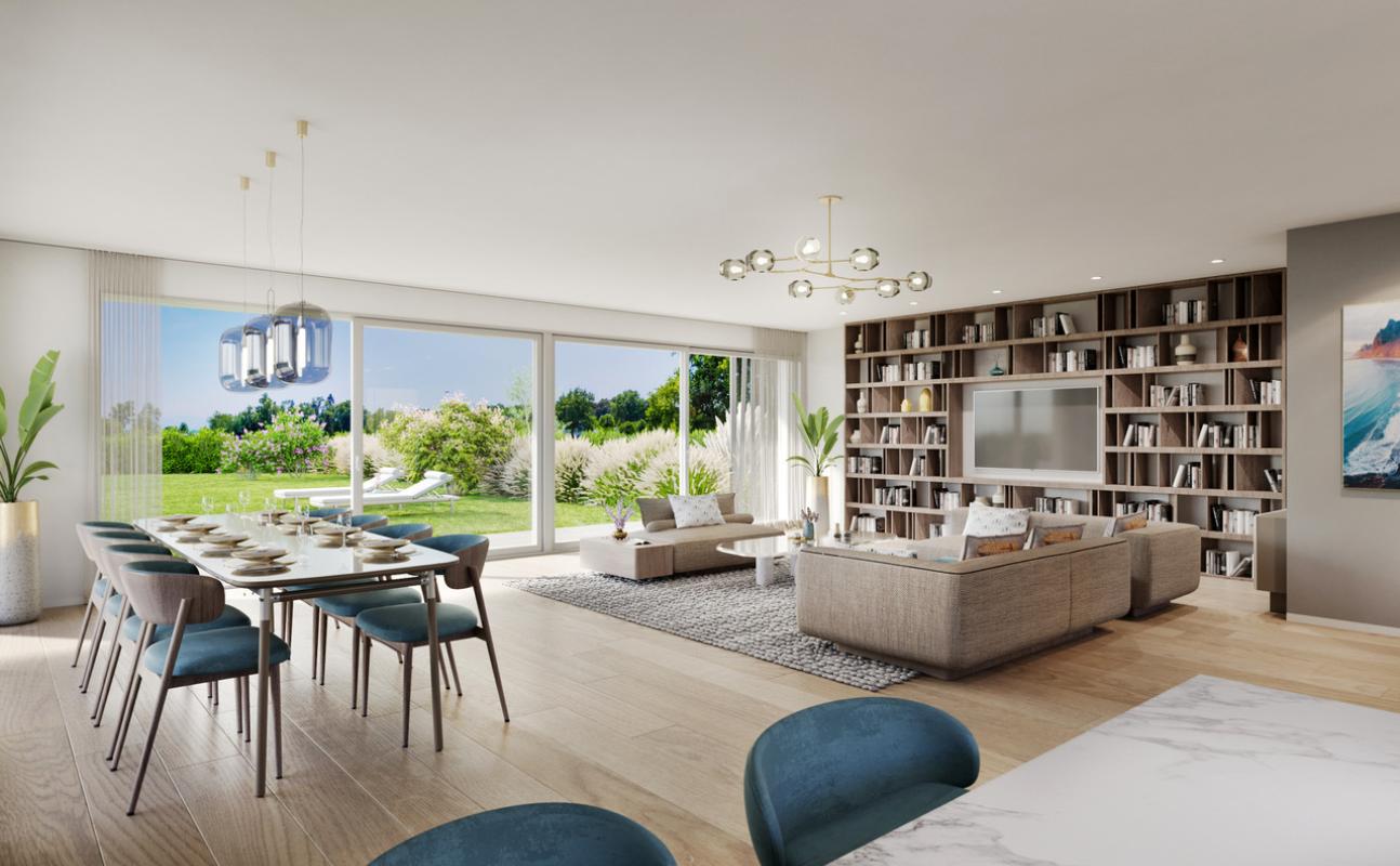 4'500'000 CHF Superbe duplex de 328 m2 avec jardins et vue lac au cœur de Corsier 4 Chambres 4 SDB 328 sqm 1246 GE Détails
