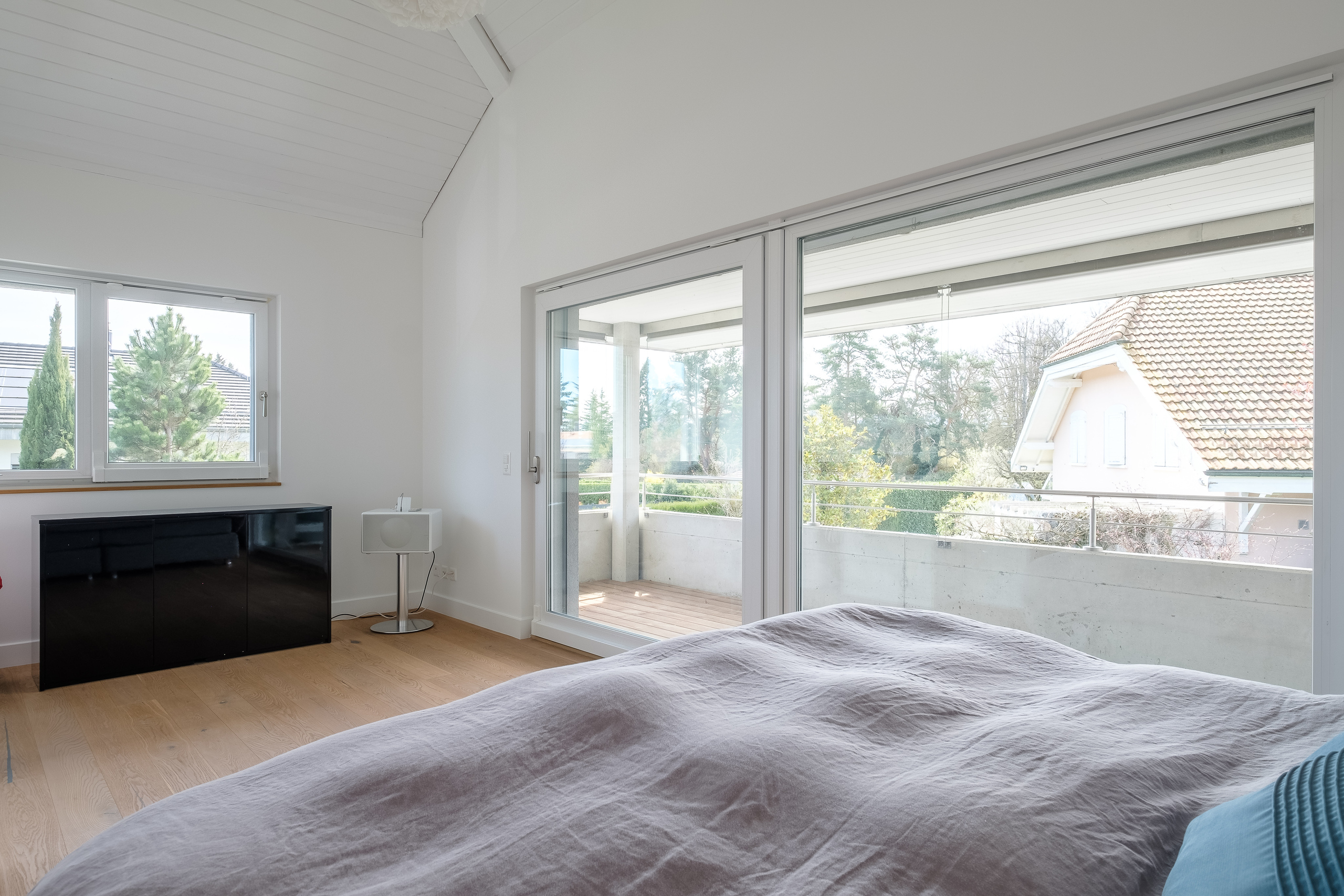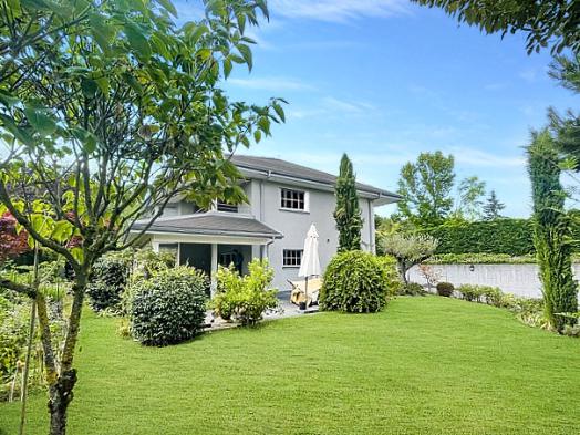 This beautiful, modern and functional family villa is ideally located in Mies, one of the Terre Sainte's most sought-after communities just a 2-minute walk from the center of Mies, its amenities, international schools, Geneva and its airport. Set on a lovely flat plot of 1,000m2, the property features a covered terrace and a pretty, sunny garden with mature trees. With its modern architecture, the villa offers some 280m2 of living space and 420m2 of usable space distributed over three levels. Carefully designed, this luminous villa features first-rate fixtures and fittings and quality materials. The first floor features a generous entrance hall with a large checkroom and visitor's toilet, a magnificent reception room with living/dining room and fireplace, and a fully equipped kitchen. A large office that could easily be converted into a bedroom completes this level. These rooms benefit from high ceilings and large bay windows,