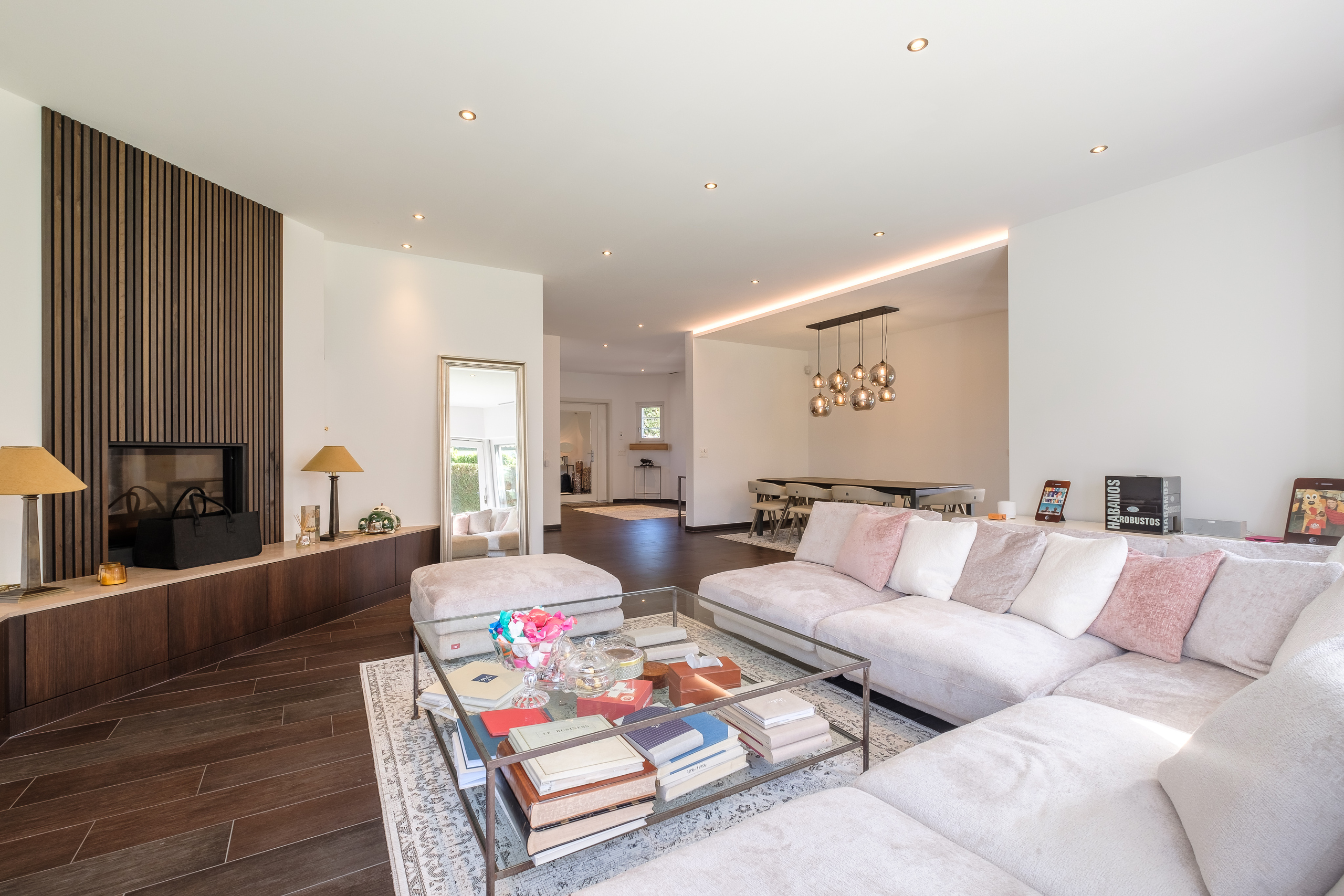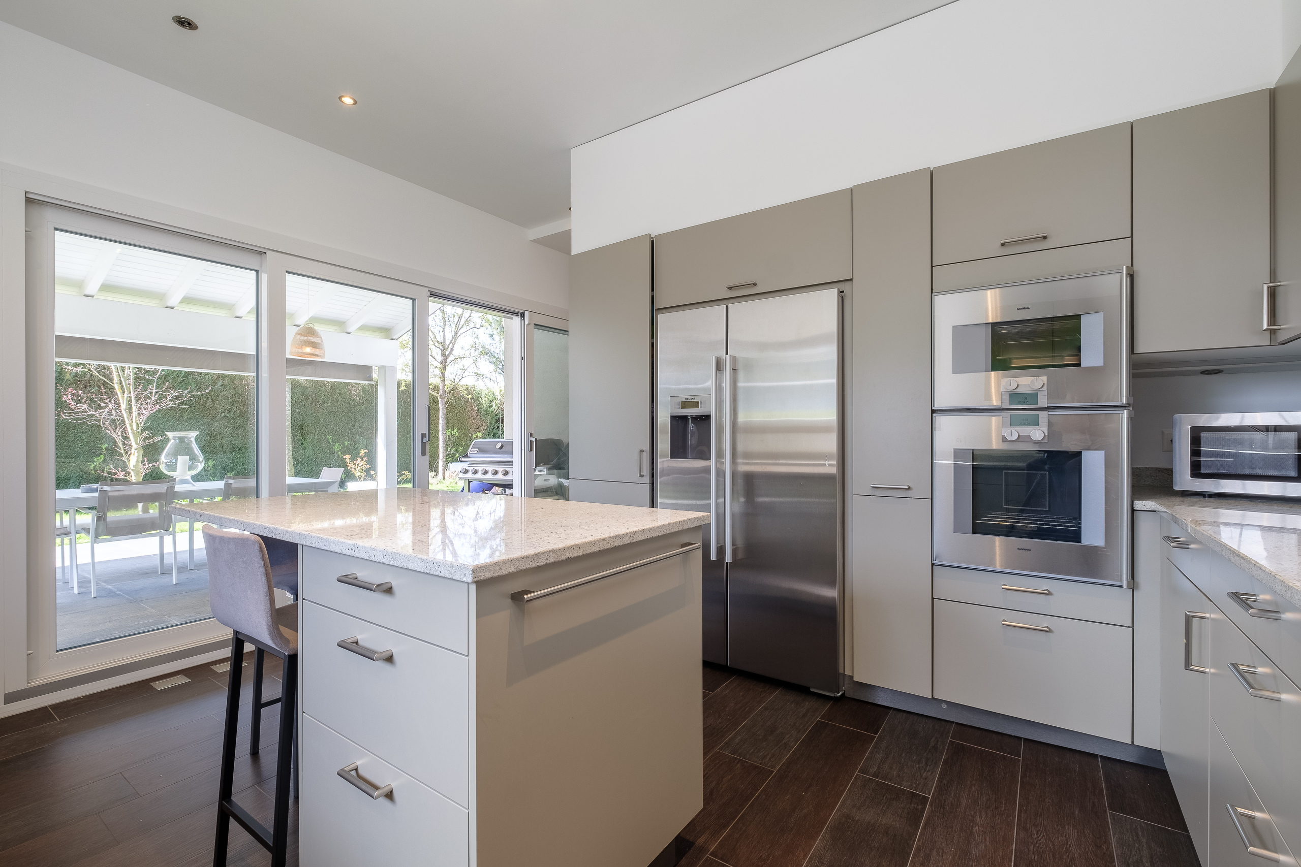 which bring in plenty of natural light. They all give direct access to the covered terrace and south-facing garden.