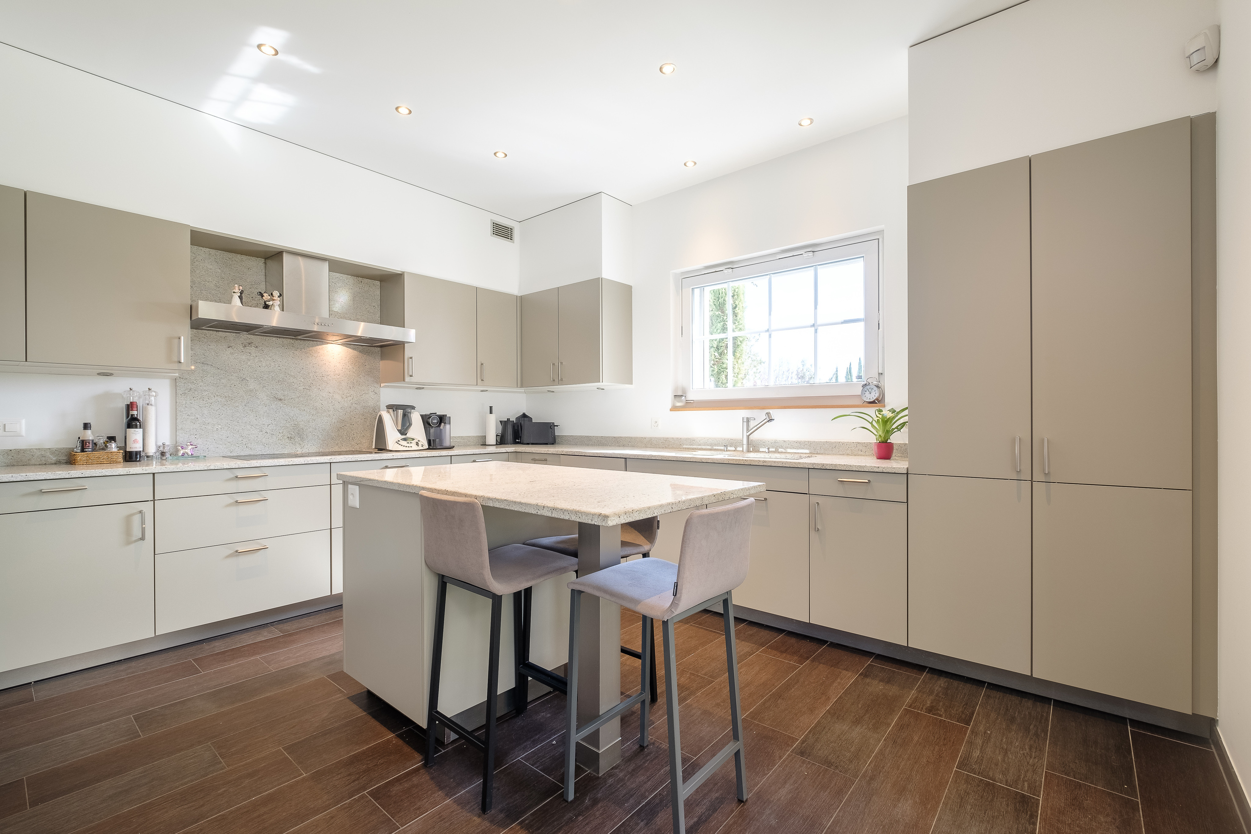 The ground floor features a large 50m2 TV/games room, an air-conditioned wine cellar, a laundry room, a machine room and two cellars.
