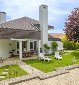 Located in a peaceful setting in the charming village of Gingins, come and discover this elegant 9.5-room architect-designed villa with its superb landscaped garden and swimming pool, offering an intimate family living environment just a few minutes from Nyon and close to Geneva. Ideal for families, this villa benefits from an unbeatable location, while offering a calm and intimate living environment. With around 250 sqm of living space, it features a large, bright living room with fireplace, a dining room opening onto a first terrace, a separate fitted kitchen, as well as a first large bedroom with dressing room also opening onto another terrace, an office, a bathroom, and 2 other rooms that could be used as a 2nd office or bedroom on the first floor. Upstairs, you'll enjoy three additional bedrooms, one with terrace, a bathroom and attic space. The basement offers storage and leisure space,