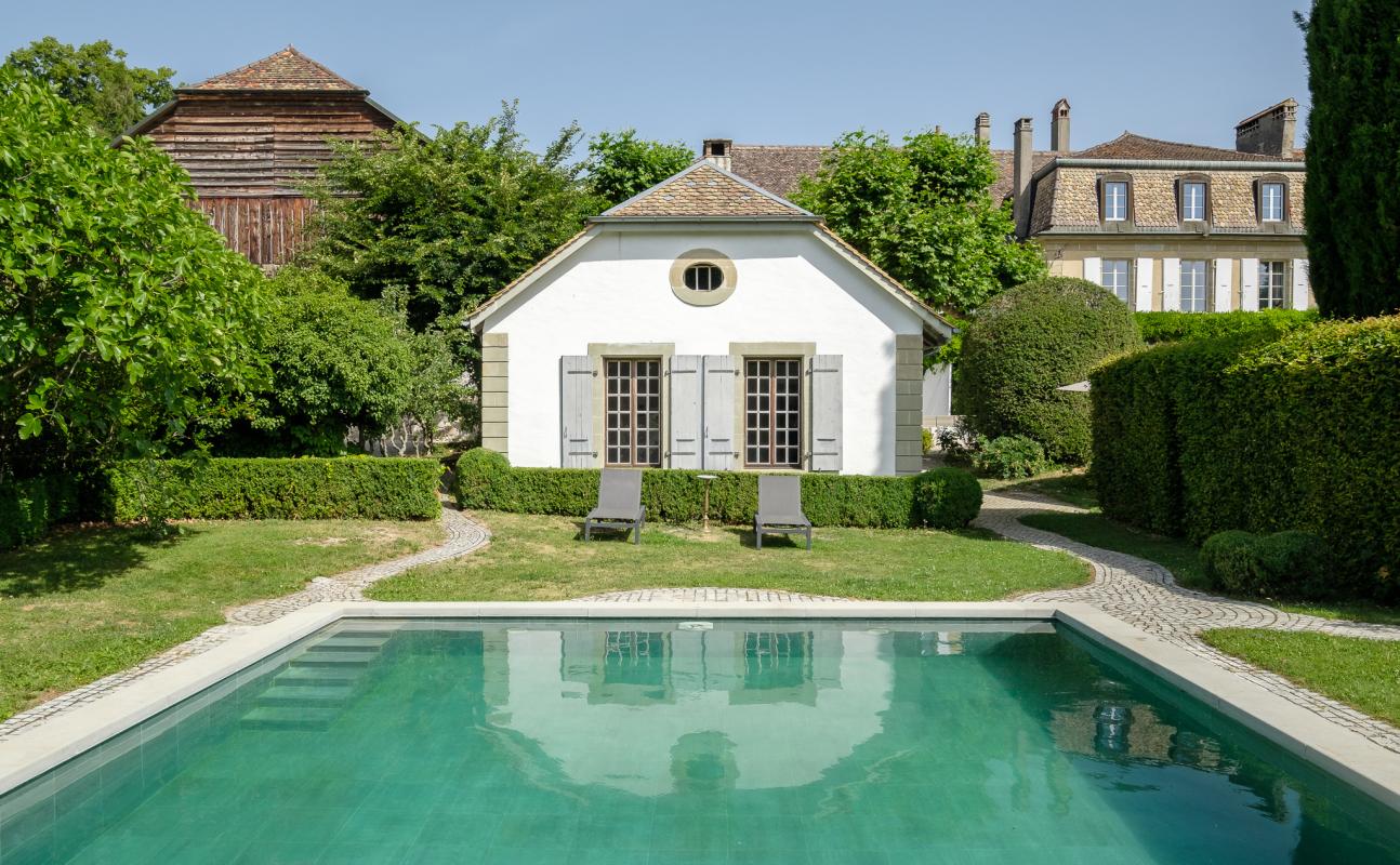 Prix sur demande Superbe propriété nichée dans un parc avec piscine proche de Morges 8 Chambres N/C SDB 700 sqm 1141 VD Détails