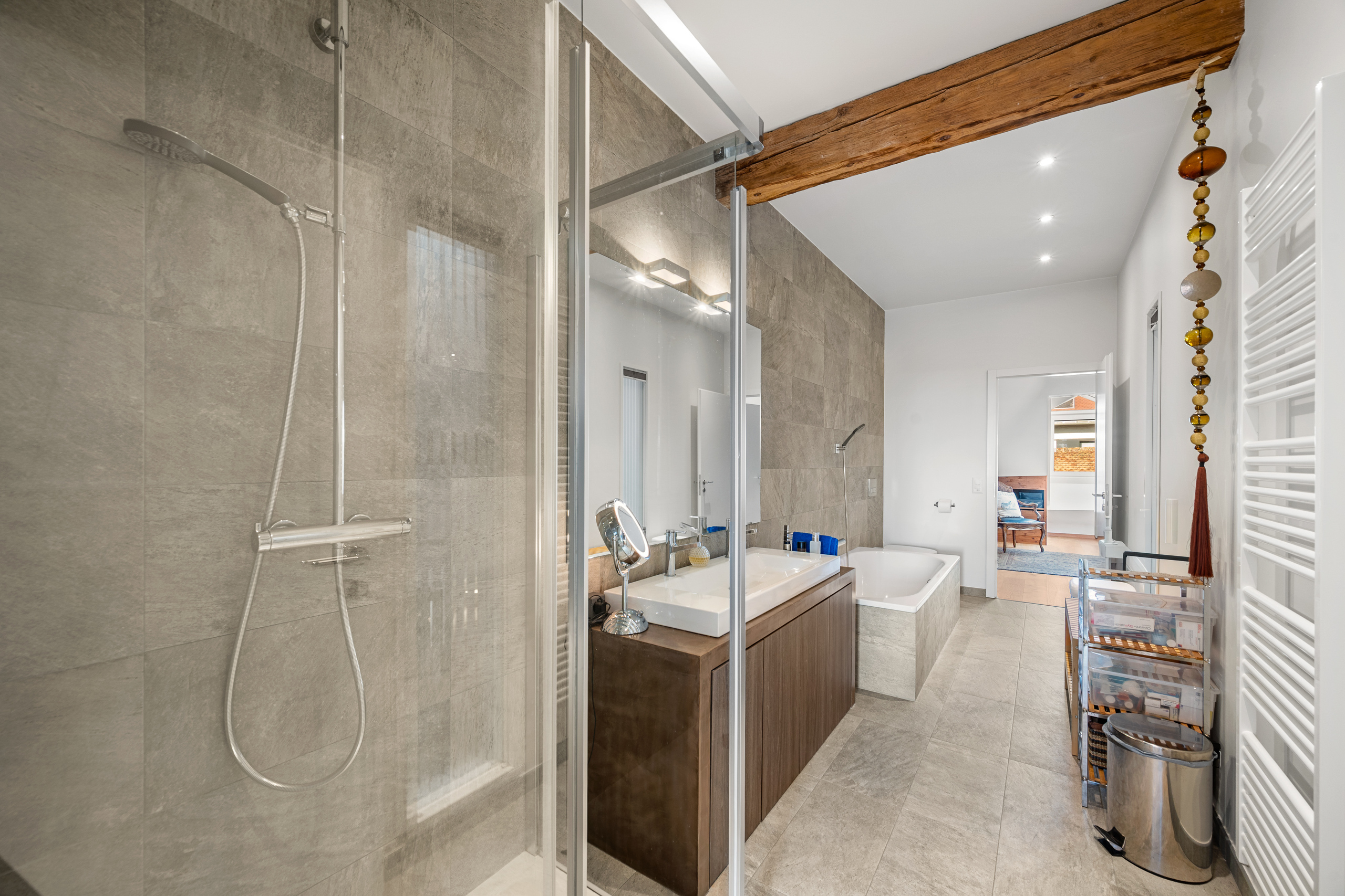 De nombreux espaces de rangement et de stockage, un local technique et une cave complètent l’intérieur.