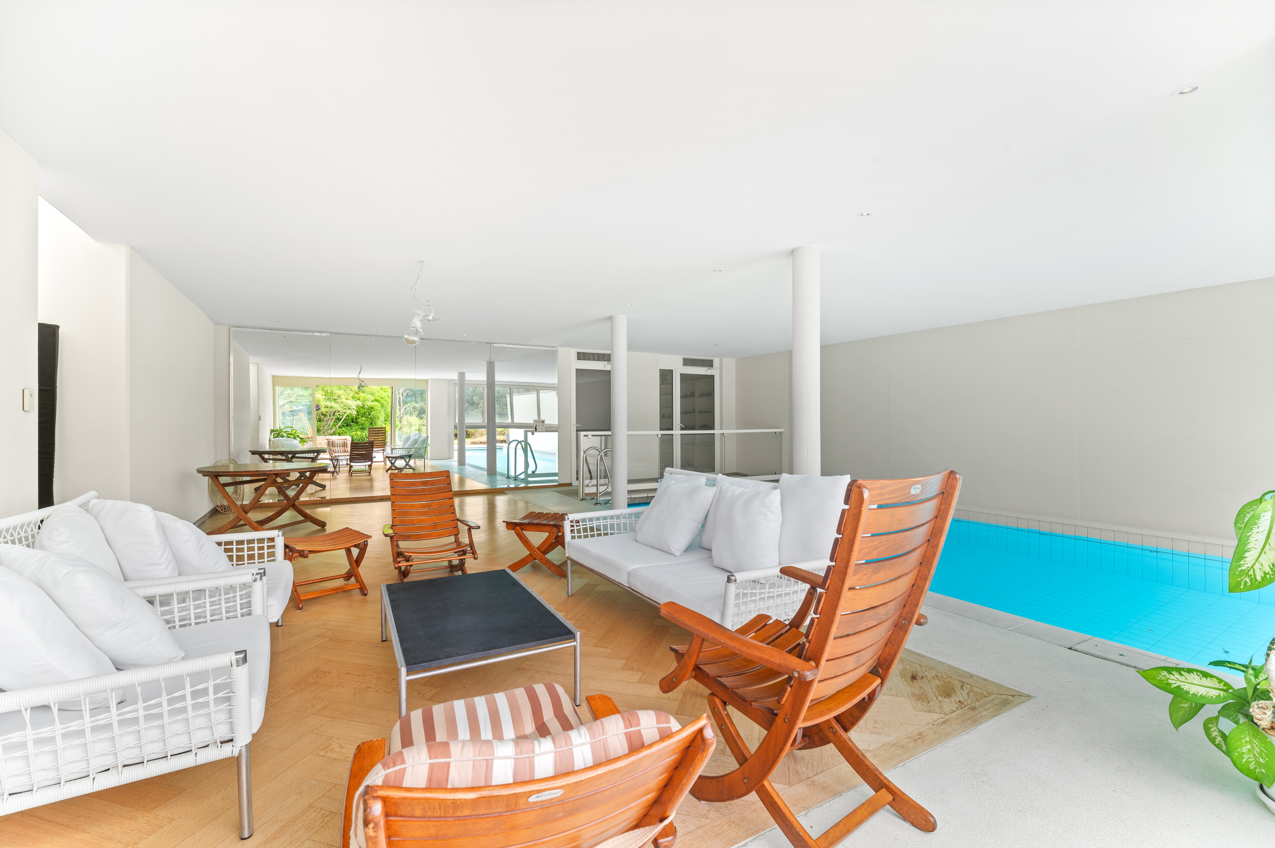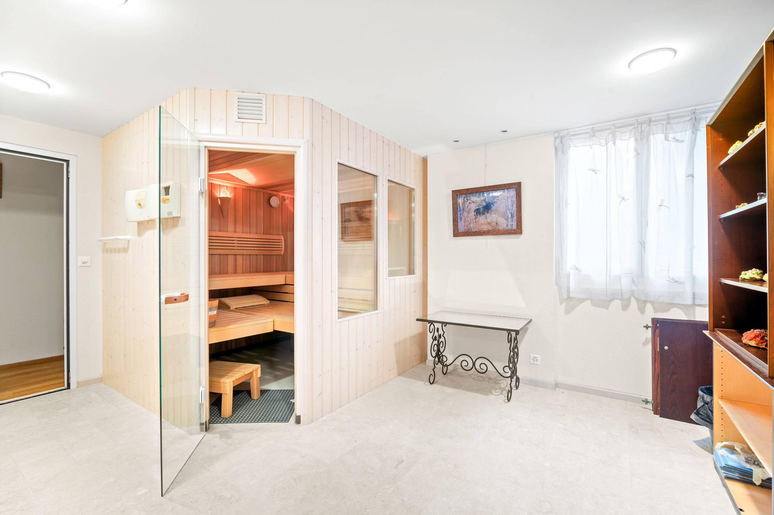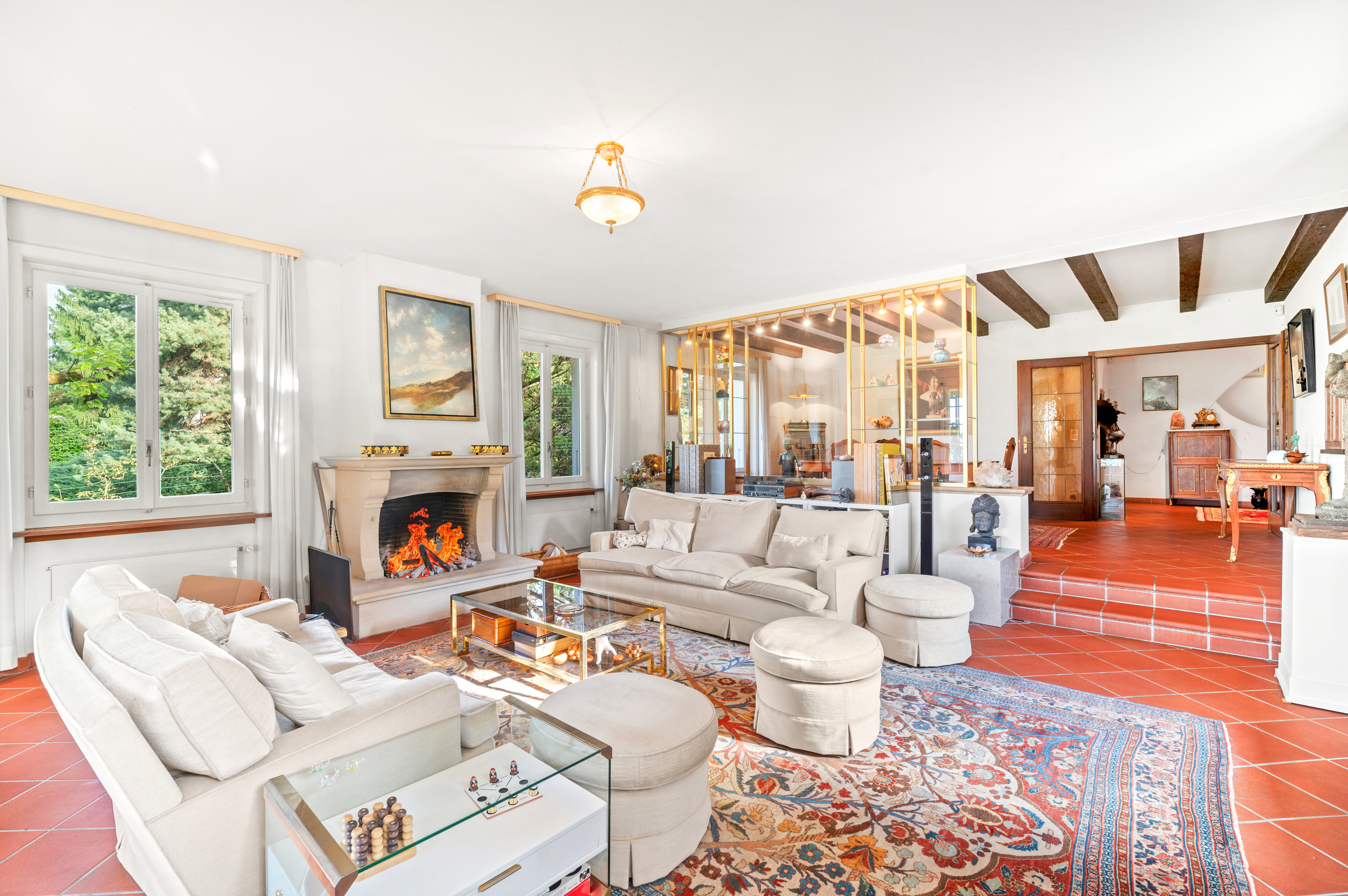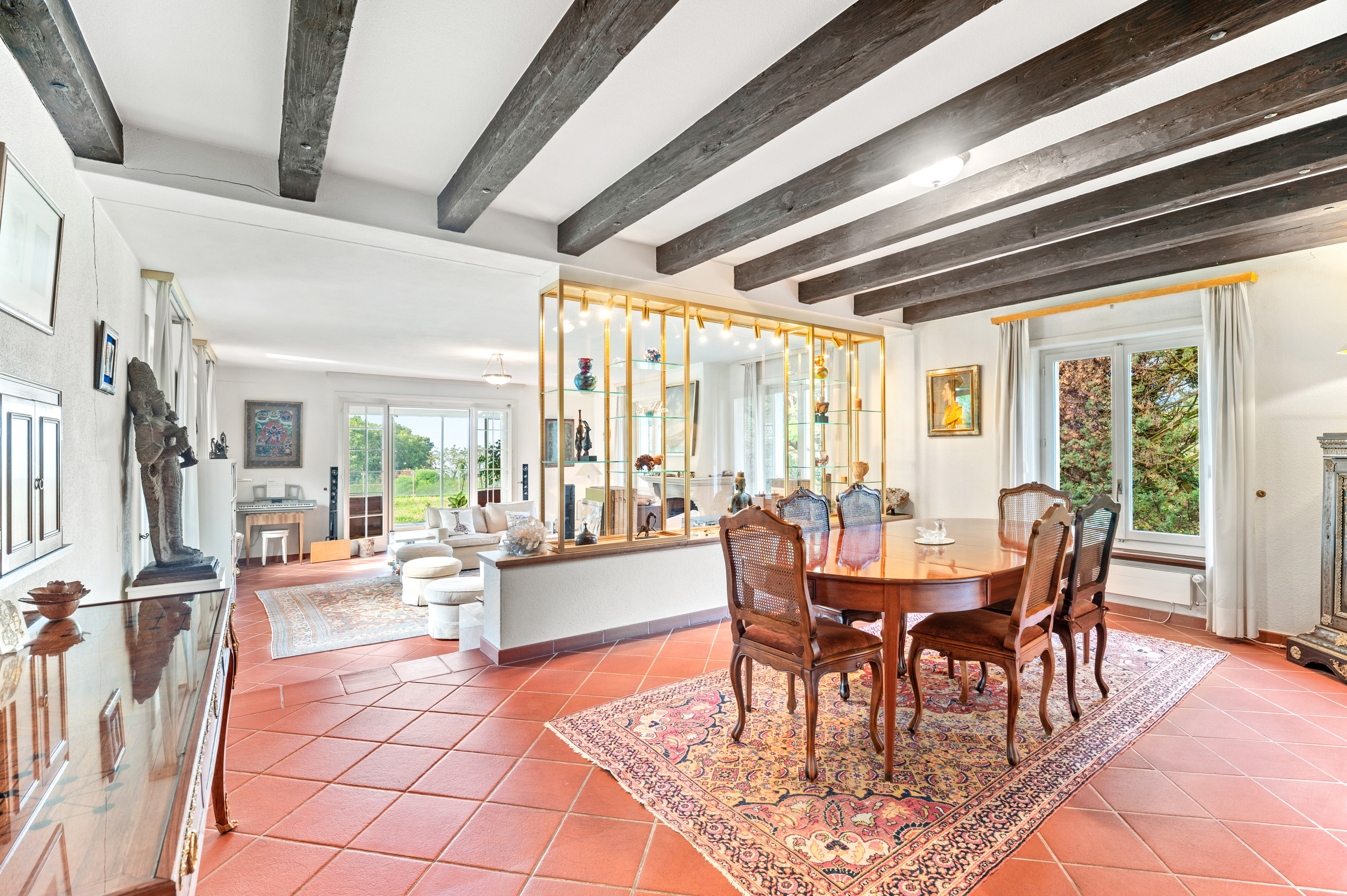 le rez inférieur. Trois garages couverts et quatre places extérieures sont à disposition de ce bien unique.