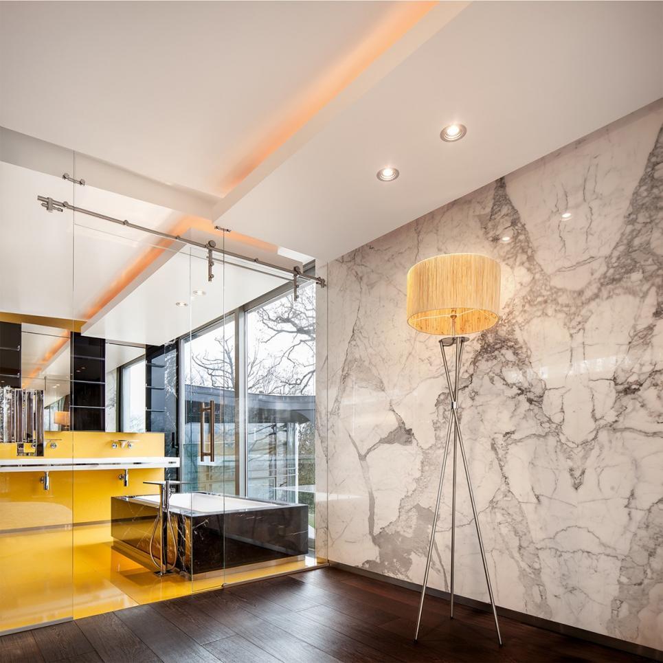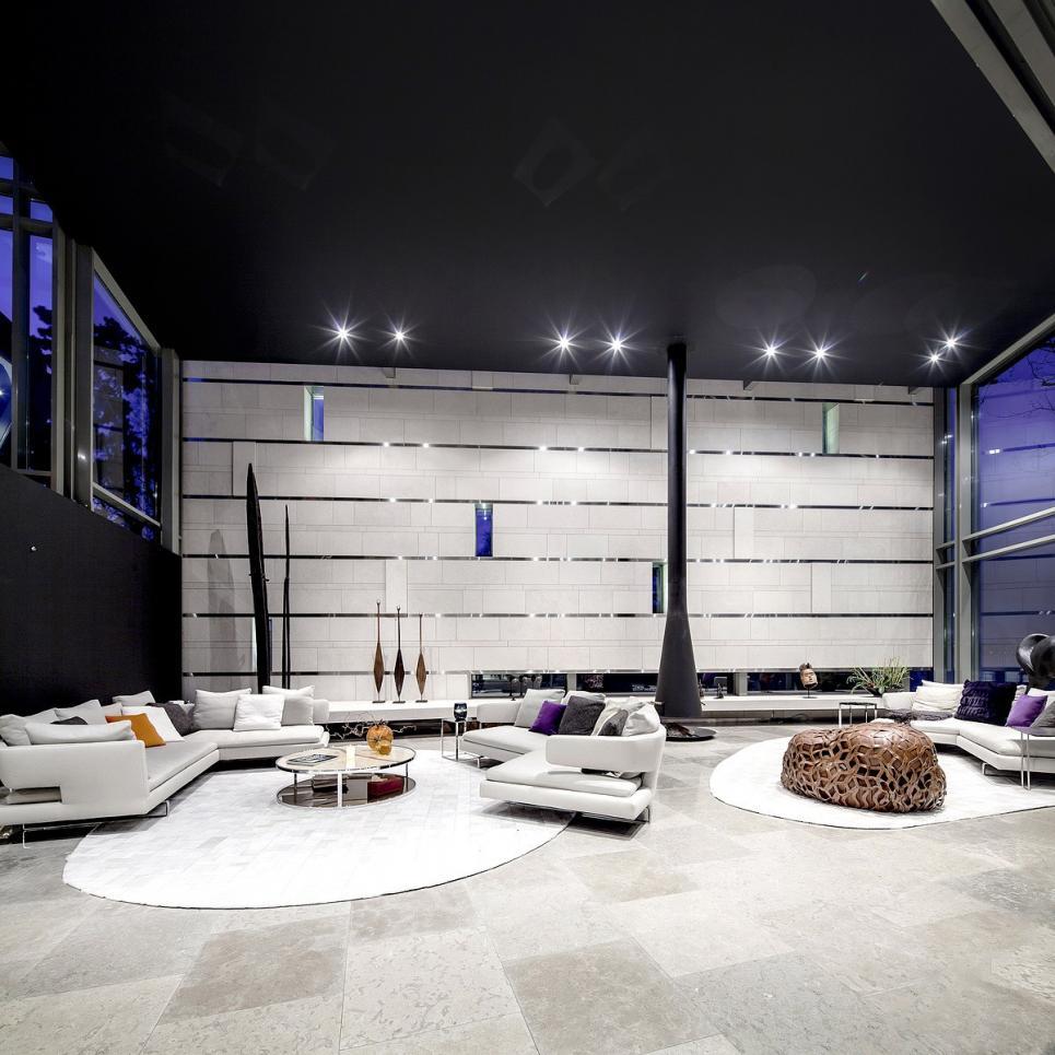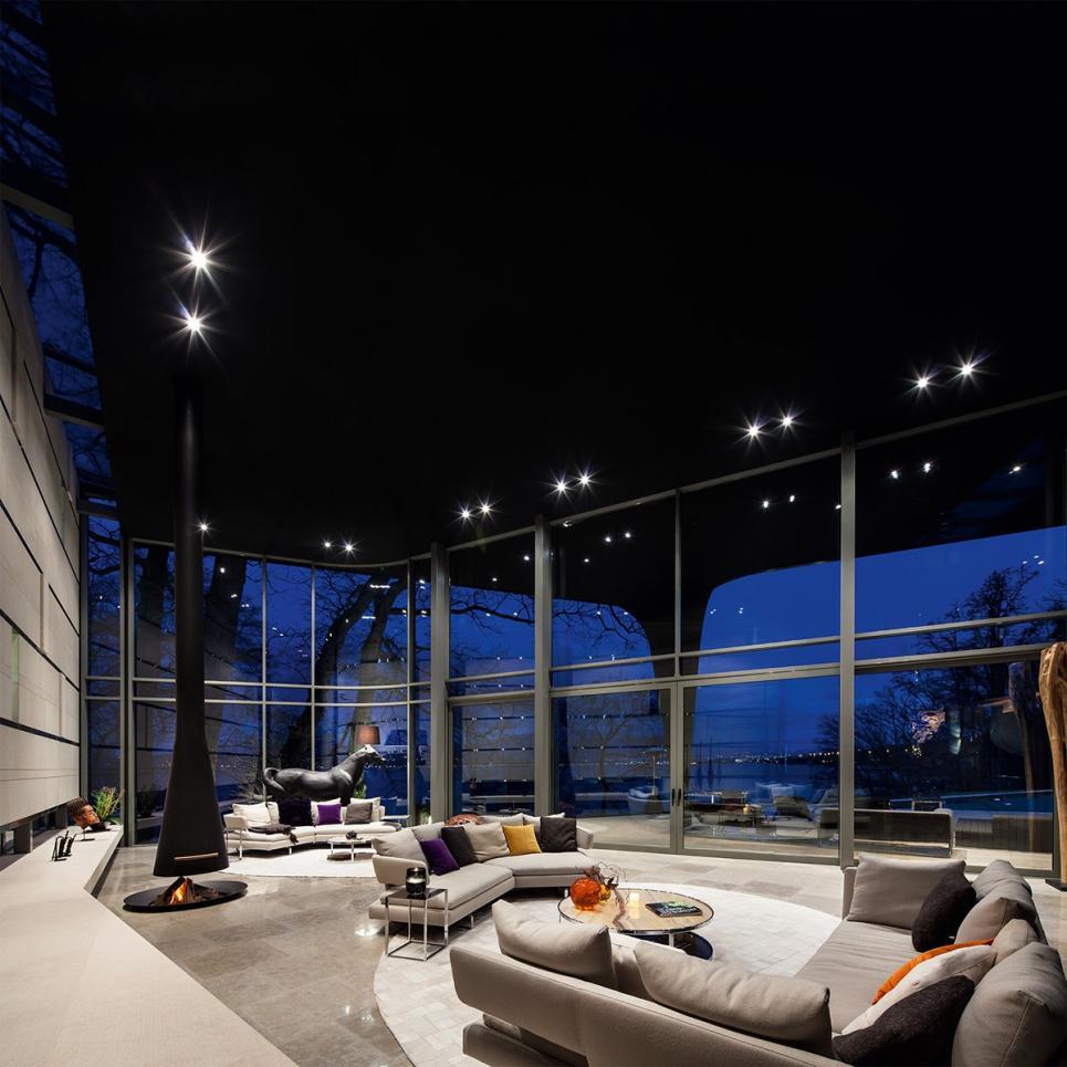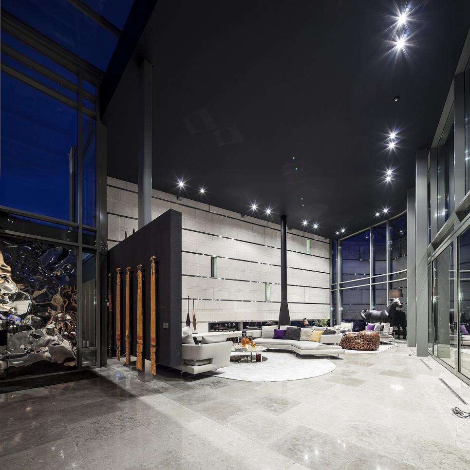 Tous les étages sont reliés par un superbe escalier au design épuré, ainsi que par un ascenseur en verre.