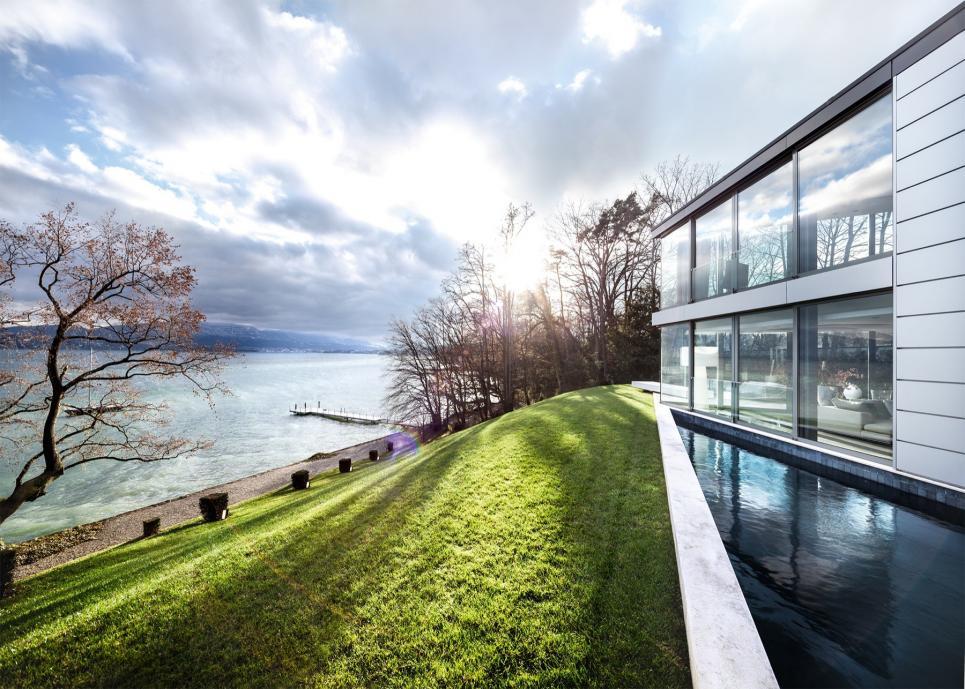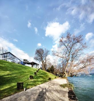 A l’extérieur, un superbe parc de 6’000m2 , avec piscine et terrasses, offre d’agréables espaces de détente supplémentaires , qui donnent directement sur les rives du lac.