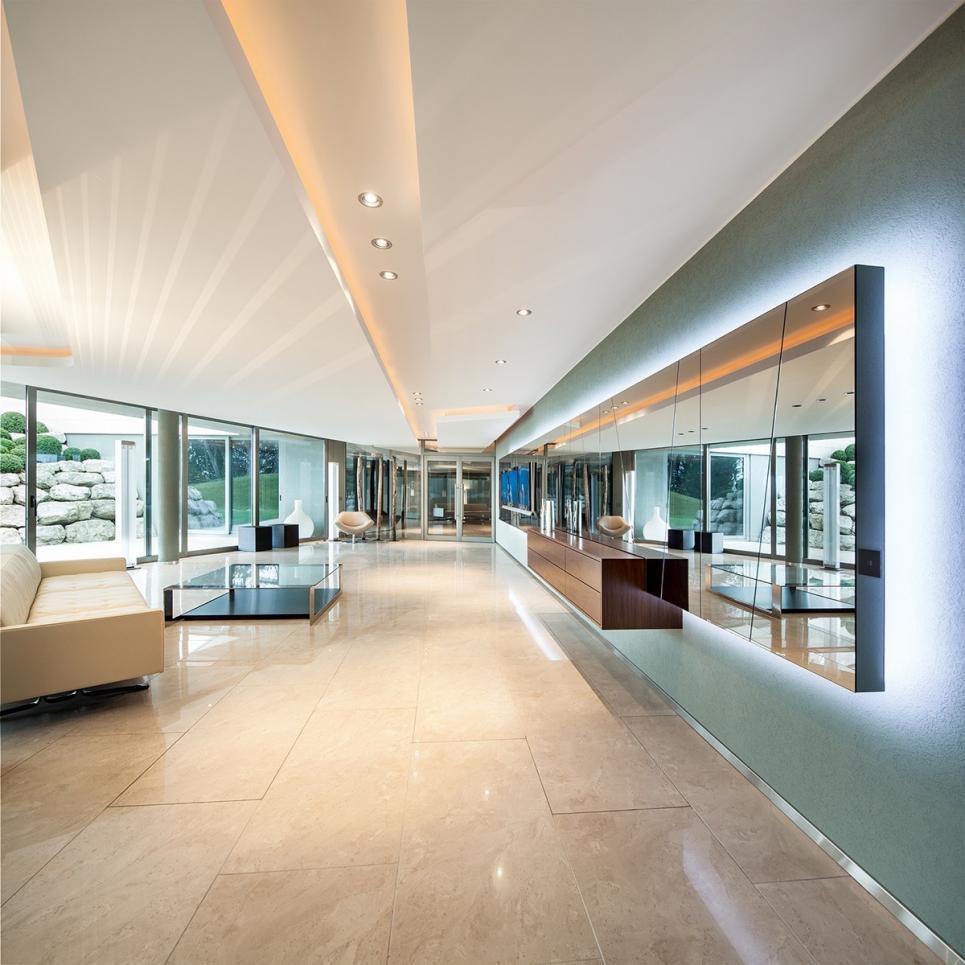 Le rez-de-chaussée inférieur dispose en autre d’un splendide spa avec piscine intérieure, d’un sauna, d’un Hammam, d’une salle de conférence et d’une chambre avec salle de bain.
