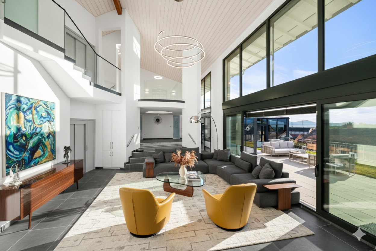 Villa d’exception de 8,5 pièces avec vue lac et Alpes, garage pour 9 voitures Implantée dans la très recherchée commune de Villars-Sainte-Croix, cette villa contemporaine remarquable offre environ 550 m² de surface habitable et près de 800 m² de surface utile. Son architecture soignée, ses volumes impressionnants et sa vue panoramique sur le lac Léman et les Alpes en font un bien véritablement unique sur le marché. Achevée en 2024, la propriété séduit par ses vastes baies vitrées, sa luminosité exceptionnelle et ses généreux espaces de vie. Le rez-de-chaussée accueille un grand salon avec salle à manger et cuisine ouverte, prolongé par un jardin d’hiver ainsi qu’une superbe piscine intérieure entièrement vitrée. Une chambre et une salle de bains complètent ce niveau. La villa compte cinq chambres, dont plusieurs configurées en suites avec salle de bains et dressing privatifs. La suite parentale bénéficie d’une terrasse offrant une vue imprenable sur les montagnes et le lac. Les demi-niveaux apportent une dynamique architecturale moderne, rappelant les plus belles réalisations contemporaines. Directement